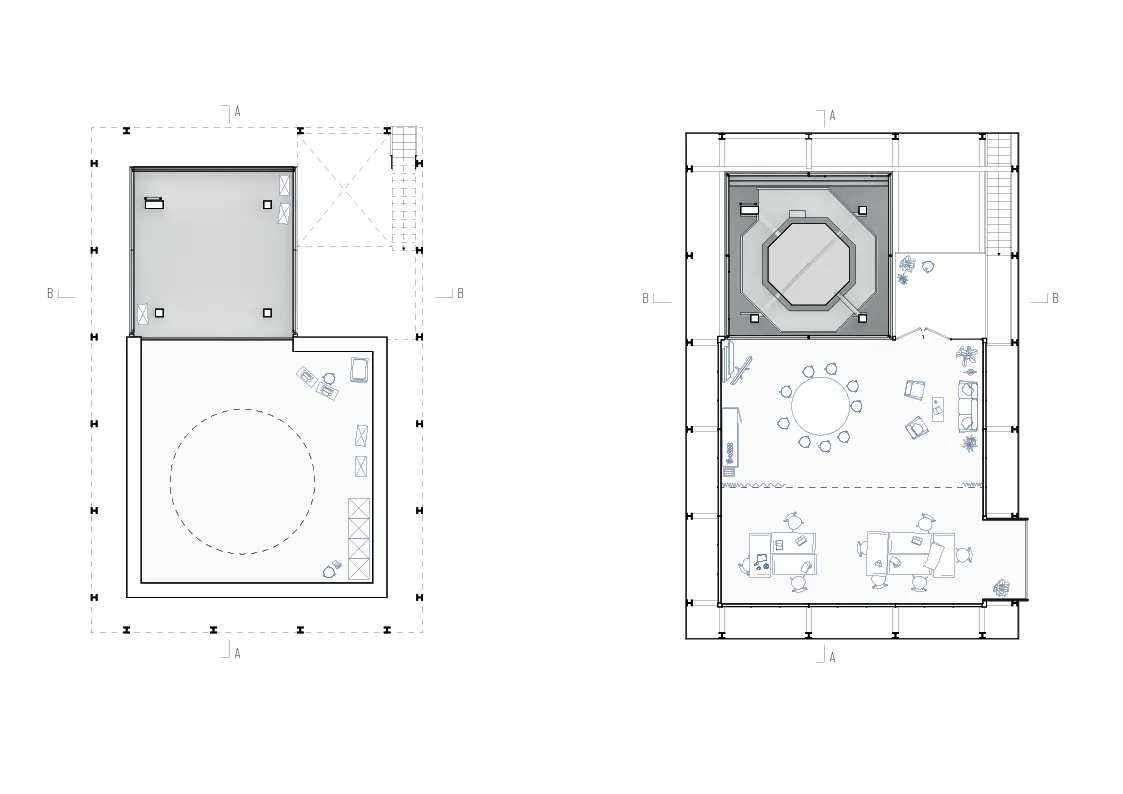 Im Zentrum der Spiegelwartung steht ein großer Raum in dem die professionellen Spiegel gewartet werden können. Dies funktioniert mithilfe von Robotern, die hochpräzise und gleichmäßig die Schicht erneuern können. Bis zu einem Spiegeldurchmesser von 1,2m kann das Polieren des Spiegels durch den Roboter erlernt werden. Es befinden sich in dem Körper ebenfalls Seminarflächen für Besucher/ -innen dieses Gebäudes.